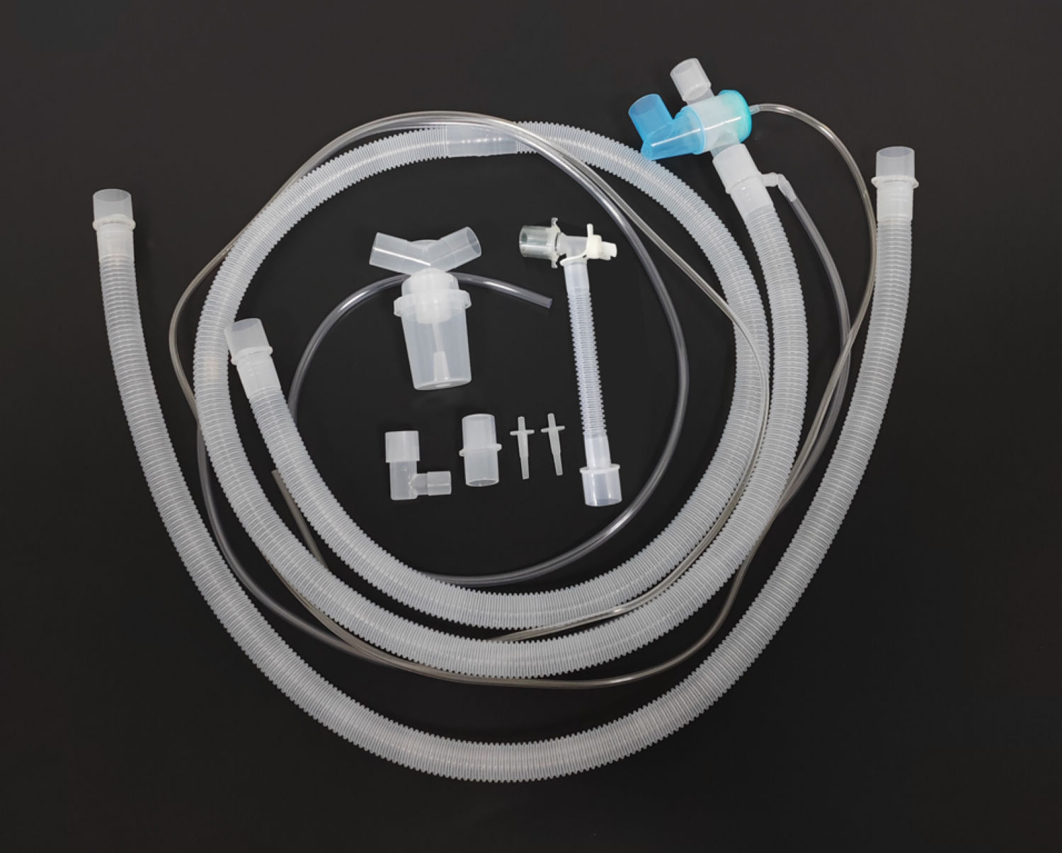 产品概述:一次性使用麻醉机和呼吸机用呼吸管路呼吸管路是连接呼吸机/麻醉机与患者气道的医用耗材,采用医用级PE材料制成,具备无菌、低气流阻力等特性,适用于ICU、呼吸科、心内科、麻醉科等需要机械通气的使用场景。规格型号及描述:规格:508个型号:分为普通型和湿化瓶型(湿化瓶型比普通型的包装中添加了一次性自动输水湿化瓶)规格描述:双集水杯管路、单集水杯管路、无集水杯管路、转运管路、一次性可伸缩/不可伸缩延长管、一次性自动输水湿化瓶功能特点安全防护:无菌包装,防静电设计,避免交叉感染临床适配:兼容主流呼吸机品牌接口,支持高流量氧疗(部分设备品牌)吸气端:近端Y型三通处可断开,连接雾化器,便于机械通气时雾化治疗使用。