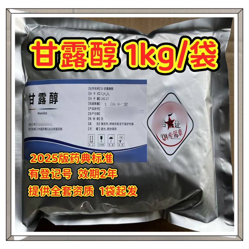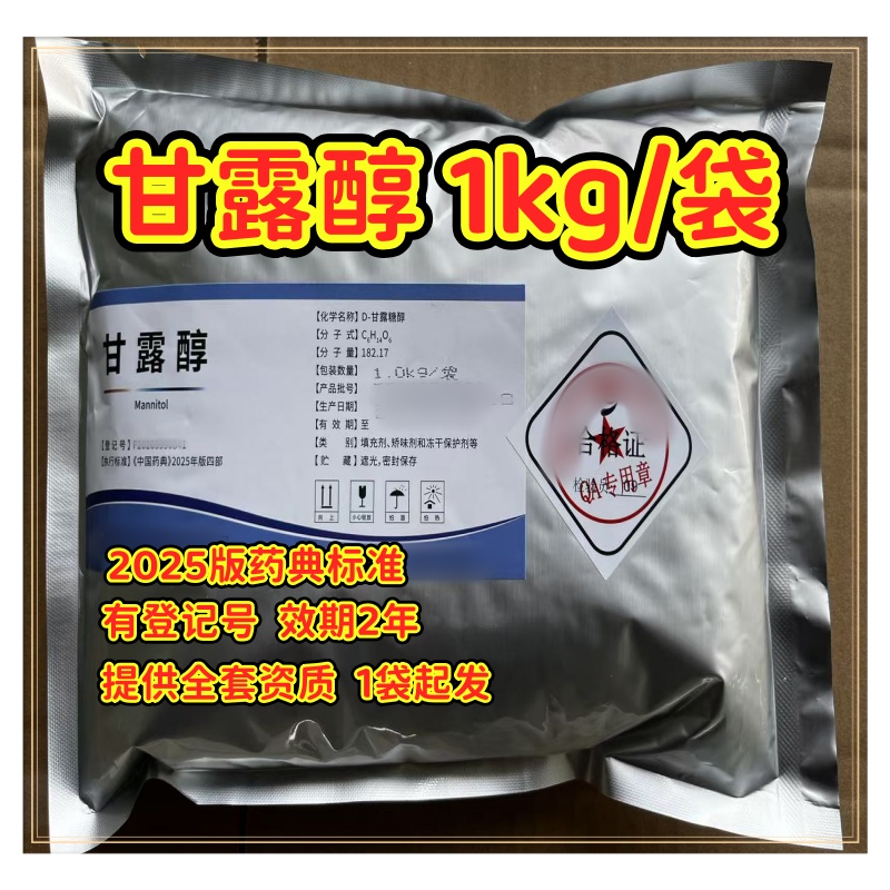 甘露醇GanluchunMannitol 本品为D-甘露糖醇。按干燥品计算,含C6H14O6应为98.0%~102.0%。 【性状】本品为白色结晶或结晶性粉末;无臭。 本品在水中易溶,在乙醚和乙醇中几乎不溶或不溶。 熔点 本品的熔点(通则0612)为166~170℃。 比旋度 取本品约1g,精密称定,置100ml量瓶中,加钼酸铵溶液(1→10)40ml,再加入0.5mol/L的硫酸溶液20ml,用水稀释至刻度,摇匀,在25℃时依法测定(通则0621),比旋度为+137°至+145°。 【鉴别】(1)取本品的饱和水溶液1ml,加三氯化铁试液与氢氧化钠试液各0.5ml,即生成棕黄色沉淀,振摇不消失;滴加过量的氢氧化钠试液,即溶解成棕色溶液。 (2)本品的红外光吸收图谱应与对照的图谱(光谱集1238图)一致。 【检查】酸度 取本品5.0g,加水50ml溶解后,加酚酞指示液3滴与氢氧化钠滴定液(0.02mol/L) 0.30ml,应显粉红色。 溶液的澄清度与颜色 取本品1.5g,加水10ml溶解后,溶液应澄清无色;如显浑浊,与1号浊度标准液(通则0902第一法)比较,不得更浓。 有关物质 照高效液相色谱法(通则0512)测定。 供试品溶液 取本品,加水溶解并稀释制成每1ml中含50mg的溶液。 对照溶液 精密量取供试品溶液1ml,置100ml量瓶中,用水稀释至刻度。 系统适用性溶液 取甘露醇与山梨醇各0.5g,置同一100ml量瓶中,加水溶解并稀释至刻度。 色谱条件 用磺化交联的苯乙烯二乙烯基苯共聚物为填充剂的强阳离子钙型交换柱(或分离效能相当的色谱柱);以水为流动相;流速为每分钟0.5ml;柱温为80℃;示差折光检测器,检测温度为55℃;进样体积20μl。 系统适用性要求 系统适用性溶液色谱图中,甘露醇峰与山梨醇峰间的分离度应大于2.0。 测定法 精密量取供试品溶液与对照溶液,分别注入液相色谱仪,记录色谱图至主成分峰保留时间的2倍。 限度 供试品溶液色谱图中如有杂质峰,各杂质峰面积的和不得大于对照溶液主峰面积的2倍(2.0%),小于对照溶液主峰面积0.05倍的色谱峰忽略不计。 还原糖 取本品5.0g,置锥形瓶中,加25ml水使溶解,加枸橼酸铜溶液(取硫酸铜25g、枸橼酸50g和无水碳酸钠144g,加水1000ml使溶解,即得)20ml,加热至沸腾,保持沸腾3分钟,迅速冷却,加2.4%(V/V)冰醋酸溶液100ml和0.025mol/L碘滴定液20.0ml,摇匀,加6%(V/V)盐酸溶液25ml(沉淀应完全溶解。如有沉淀,继续加该盐酸溶液至沉淀完全溶解),用硫代硫酸钠滴定液(0.05mol/L) 滴定,近终点时加淀粉指示液1ml,继续滴定至蓝色消失。消耗硫代硫酸钠滴定液(0.05mol/L) 的体积不得少于12.8ml。 氯化物 取本品2.0g,依法检查(通则0801),与标准氯化钠溶液6.0ml制成的对照液比较,不得更浓(0.003%)。 硫酸盐 取本品2.0g,依法检查(通则0802),与标准硫酸钾溶液2.0ml制成的对照液比较,不得更浓(0.01%) 。 草酸盐 取本品1.0g,加水6ml,加热溶解后,放冷,加氨试液3滴与氯化钙试液1ml,摇匀,置水浴中加热15分钟后,取出,放冷;如发生浑浊,与草酸钠溶液[取草酸钠0.1523g,置1000ml量瓶中,加水溶解并稀释至刻度,摇匀。每1ml相当于0.1mg的草酸盐(C2O4)]2.0ml用同一方法制成的对照液比较,不得更浓(0.02%)。 干燥失重 取本品,在105℃干燥至恒重,减失重量不得过0.5%(通则0831) 。 炽灼残渣 不得过0.1%(通则0841)。 重金属 取本品2.0g,加水23ml溶解后,加醋酸盐缓冲液(pH3.5)2ml,依法检查(通则0821第一法),含重金属不得过百万分之十。 砷盐 取本品1.0g,加水10ml使溶解,加稀硫酸5ml与溴化钾溴试液0.5ml,置水浴上加热20分钟,使保持稍过量的溴存在(必要时可滴加溴化钾溴试液),并随时补充蒸散的水分,放冷,加盐酸5ml与水适量使成28ml,依法检查(通则0822第一法),应符合规定(0.0002%) 。 【含量测定】取本品约0.2g,精密称定,置250ml量瓶中,加水使溶解并稀释至刻度,摇匀;精密量取10ml,置碘瓶中,精密加高碘酸钠溶液[取硫酸溶液(1→20)90ml与高碘酸钠溶液(2.3→1000) 110ml混合制成]50ml,置水浴上加热15分钟,放冷,加碘化钾试液10ml,密塞,放置5分钟,用硫代硫酸钠滴定液(0.05mol/L)滴定,至近终点时,加淀粉指示液1ml,继续滴定至蓝色消失,并将滴定的结果用空白试验校正。每1ml硫代硫酸钠滴定液(0.05mol/L) 相当于0.9109mg的C6H14O6。 【类别】脱水药。 【贮藏】遮光,密封保存。 【制剂】甘露醇注射液