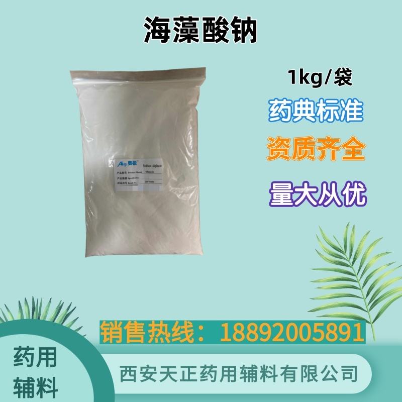 [9005-38-3] 本品系从褐色海藻植物中用稀碱提取精制而得,其主要成分为海藻酸的钠盐。 【性状】本品为白色至浅棕黄色粉末。 本品在水中溶胀成胶体溶液,在乙醇中不溶。 【鉴别】(1)取本品0.2g,加水20ml,时时振摇至分散均匀,作为供试品溶液。取5ml,加5%氯化钙溶液 1 ml,即生成大量胶状沉淀。 (2)取鉴别(1)项下的供试品溶液5ml,加稀硫酸1ml,即生成大量胶状沉淀。 (3)取本品约10mg,加水5ml,加新制的1%1,3-二羟基萘的乙醇溶液1ml与盐酸5ml,摇匀,煮沸3分钟,冷却,加水5ml与异丙醚15ml,振摇。同时做空白试验。上层溶液应显深紫色。 (4)取炽灼残渣项下的残渣,加水5ml使溶解,显钠盐的鉴别反应(通则0301)。 【检查】溶液的澄清度与颜色 取本品0.10g,加水适量不断搅拌使溶解,用水稀释至30ml,摇匀,放置1小时,精密量取1ml,置10ml量瓶中,用水稀释至刻度,摇匀,依法检查(通则0901与通则0902),溶液应澄清无色;如显浑浊,与2号浊度标准液(通则0902第一法)比较,不得更浓;如显色,与黄色2号标准比色液(通则0901第一法)比较,不得更深。 氯化物 取本品2.5g,精密称定,置100ml量瓶中,加稀硝酸50ml,振摇1小时,用稀硝酸稀释至刻度,摇匀,滤过,精密量取续滤液50ml,精密加入硝酸银滴定液(0.1mol/L)10ml,加甲苯5ml与硫酸铁铵指示液2ml,用硫氰酸铵滴定液(0.1mol/L)滴定,滴至近终点时,用力振摇。每lml硝酸银滴定液(0.1mol/L)相当于3.545mg的Cl。含Cl不得过1.0%。 干燥失重 取本品0.5g,在105℃干燥4小时,减失重量不得过15.0%(通则0831)。 炽灼残渣 取本品0.5g,依法检查(通则0841),按干燥品计算,遗留残渣应为30.0%~36.0%。 钙盐 取本品0.1g两份,分别置锥形瓶中,一份中加硝酸5ml消化后,定量转移至100ml量瓶中,用水稀释至刻度,摇匀,精密量取10ml,置100ml量瓶中,用水稀释至刻度,摇匀,作为供试品溶液;另一份中精密加入标准钙溶液(每lml中含钙1000μg的溶液)1.5ml,同法操作,作为对照品溶液。照原子吸收分光光度法(通则0406第二法),在422.7nm的波长处分别测定,应符合规定(1.5%)。 铅 取本品1.0g两份,分别置锥形瓶中,一份中加10ml硝酸消化后,定量转移至10ml量瓶中,用水稀释至刻度,摇匀,作为供试品溶液;另一份中精密加入标准铅溶液(精密量取铅单元素标准溶液适量,用水定量稀释制成每lml中含铅10μg的溶液)lml,同法操作,作为对照品溶液。照原子吸收分光光度法(通则0406第二法),在283.3nm的波长处分别测定,应符合规定(0.001%)。 重金属 取炽灼残渣项下遗留的残渣,依法检查(通则0821第二法,必要时,滤过),含重金属不得过百万分之二十。 砷盐 取本品1.33g,加氢氧化钙1.3g,混合,加水湿润,烘干,先用小火加热使其反应完全,逐渐加大火力灼烧使炭化,再在500~600℃炽灼使完全灰化,放冷,加盐酸8ml与水23ml使溶解,依法检查(通则0822第二法),应符合规定(0.000 15%)。 微生物限度 取本品,依法检查(通则1105与通则1106),每1g供试品中需氧菌总数不得过103cfu,霉菌和酵母菌总数不得过102cfu,不得检出大肠埃希菌;每10g供试品中不得检出沙门菌。 【类别】药用辅料,助悬剂和阻滞剂等。 【贮藏】密封保存。