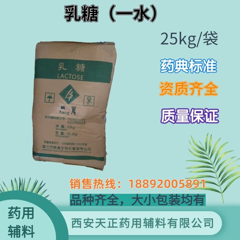 C12H22O11·H2O 360.31 [5989-81-1] 本品为4-O-β-D-吡喃半乳糖基-D-葡萄糖一水合物。按无水物计算,含C12H22O11应为98.0%~102.0%。 【性状】本品为白色至类白色的结晶性颗粒或粉末。 本品在水中易溶,在乙醇、三氯甲烷或乙醚中不溶。 比旋度 取本品10g,精密称定,用80ml的水溶解并加热至50℃,冷却后,加氨试液0.2ml,静置30分钟,用水稀释至100ml,依法测定(通则0621)。按无水物计算,比旋度应为+54.4°至+55.9°。 【鉴别】(1)在含量测定项下记录的色谱图中,供试品溶液主峰的保留时间应与对照品溶液主峰的保留时间一致。 (2)本品的红外光吸收图谱应与对照图谱(光谱集256图)一致(通则0402)。 【检查】酸碱度 取本品6.0g,加新沸放冷的水25ml溶解,加入酚酞指示液0.3ml,溶液应无色,用氢氧化钠滴定液(0.1mol/L)滴定,至溶液显粉红色,消耗的氢氧化钠滴定液(0.1mol/L)应不得过0.4ml。 溶液的澄清度 取本品1.0g,加沸水10ml溶解后,依法检查(通则0902),溶液应澄清,如显浑浊,与1号浊度标准液比较,不得更浓。 有关物质 取本品适量,加水溶解并定量稀释制成每1ml含100mg的溶液,作为供试品溶液;精密量取1ml,置100ml量瓶中,加水稀释至刻度,摇匀,作为对照溶液。照含量测定项下的方法试验,记录色谱图至主成分峰保留时间的2倍。供试品溶液的色谱图中除溶剂峰以外,如显杂质峰,各杂质峰面积之和不得大于对照溶液主峰面积的0.5倍(0.5%)。 蛋白质与杂质吸光度 取本品,精密称定,加温水溶解并定量稀释成每1ml中含100mg的溶液,照紫外-可见分光光度法(通则0401)检测,在400nm的波长处测定吸光度,不得过0.04。再精密吸取上述溶液1ml,置10ml量瓶中,加水稀释至刻度,照紫外-可见分光光度法(通则0401)检测,在210~220nm的波长范围内测定吸光度,不得过0.25;在270~300nm的波长范围内测定吸光度,不得过0.07。 干燥失重 取本品,在80℃干燥2小时,减失重量不得过1.0%(通则0831)。 水分 取本品,以甲醇-甲酰胺(2∶1)为溶剂,照水分测定法(通则0832第一法1)测定,含水分应为4.5%~5.5%。 炽灼残渣 取本品1.0g,依法检查(通则0841),遗留残渣不得过0.1%。 重金属 取本品3.0g,加温水20ml溶解后,再加醋酸盐缓冲液(pH3.5)2ml与水适量使成25ml,依法检查(通则0821第一法),含重金属不得过百万分之五。 砷盐 取炽灼残渣项下残留物,加水23ml溶解后,加盐酸5ml,依法检查(通则0822第一法),应符合规定(0.0002%)。 微生物限度 取本品,依法检查(通则1105与通则1106),每1g供试品中需氧菌总数不得过103cfu,霉菌和酵母菌总数不得过102cfu,不得检出大肠埃希菌。 【含量测定】照高效液相色谱法(通则0512)测定。 色谱条件与系统适用性试验 用氨基键合硅胶(或氨基键合聚合物)为填充剂;以乙腈-水(70∶30)为流动相;示差折光检测器;参考条件(柱温为30℃,检测器温度为30℃)。取乳糖对照品与蔗糖对照品各适量,精密称定,加水溶解并稀释制成每1ml各含5mg的溶液,取10μl,注入液相色谱仪,乳糖峰与蔗糖峰的分离度应符合要求。 测定法 取本品适量,精密称定,加水溶解并定量稀释制成每1ml约含乳糖5mg的溶液,精密量取10μl,注入液相色谱仪,记录色谱图;另取乳糖对照品适量,同法测定,按外标法以峰面积计算,即得。 【类别】药用辅料,填充剂和矫味剂等(供非注射剂、非吸入制剂用)。 【贮藏】密闭保存。
