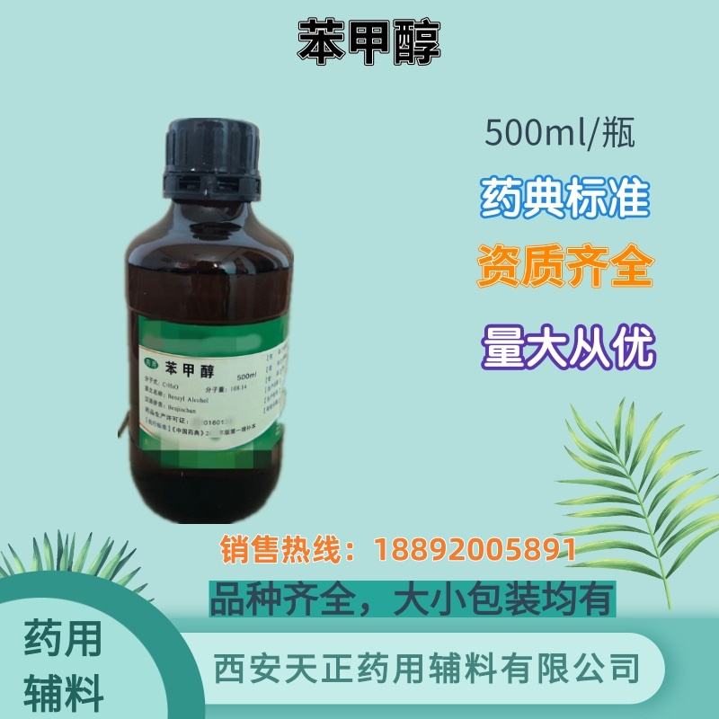 测定法 取本品,精密称定,用甲醇稀释制成每1ml中约含1mg的溶液,精密量取1μl注入气相色谱仪,记录色谱图;另取苯甲醇对照品,同法测定,按外标法以峰面积计算,即得。