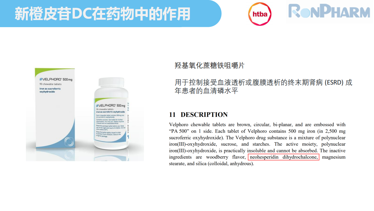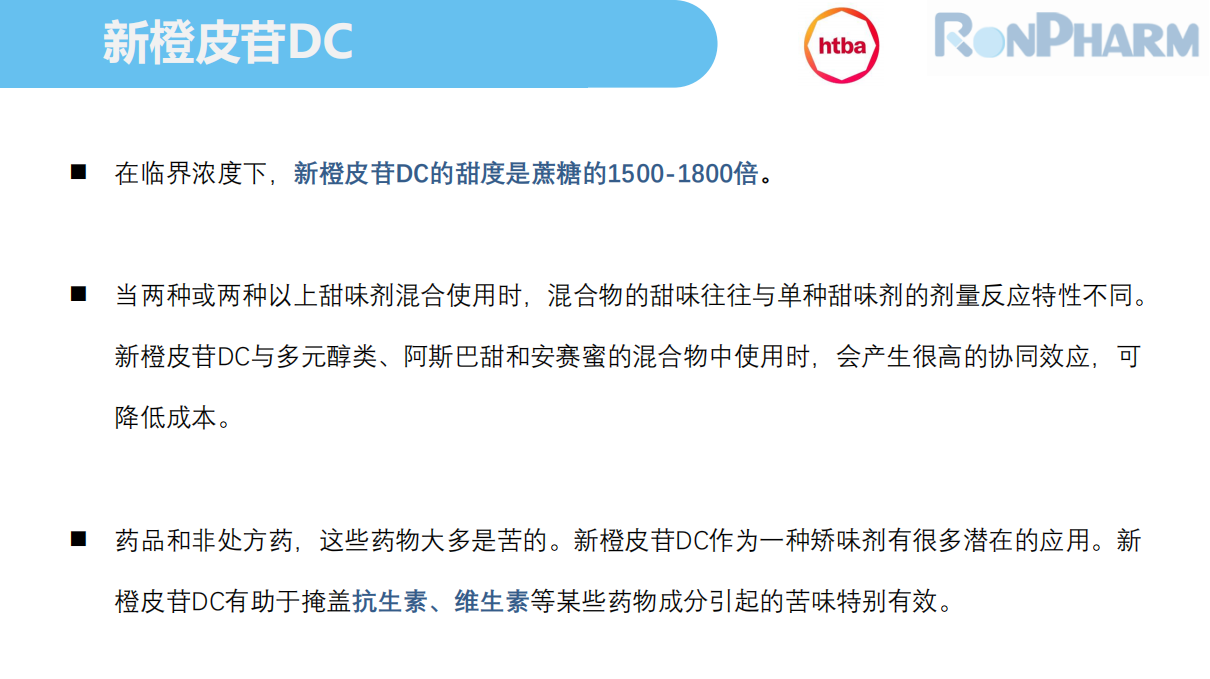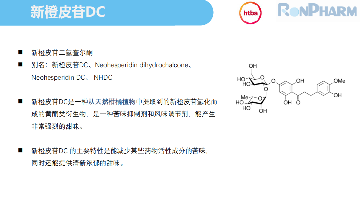 ◼新橙皮苷DC 的主要特性是能减少某些药物活性成分的苦味,