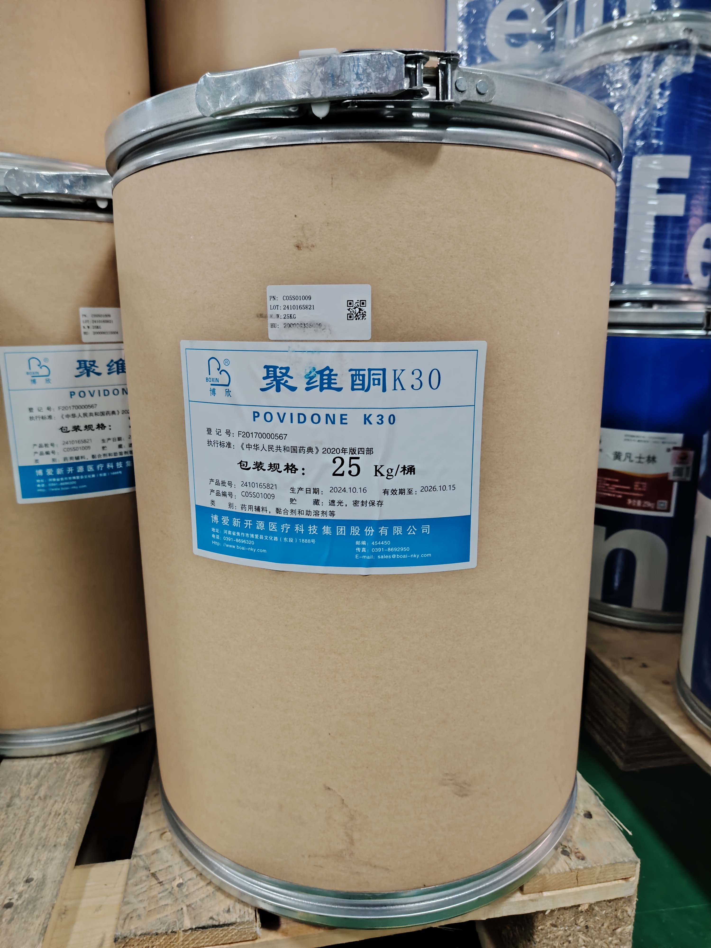 本品系吡咯烷酮和乙炔在加压下生成乙烯基吡咯烷酮单体,在催化剂作用下聚合得到的1-乙烯基-2-吡咯烷酮均聚物,其平均分子量为3.8×104。分子式为(C6H9NO)n,其中n代表1-乙烯基-2-吡咯烷酮链节的平均数。按无水物计算,含氮(N)量应为11.5%~12.8%。 【性状】本品为白色至乳白色粉末;无臭或稍有特臭。 本品在水、甲醇或乙醇中易溶,在丙酮中极微溶解,在乙醚中不溶。