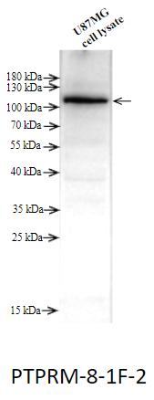 产品编号nrbe-12373A产品类型小鼠单克隆抗体英文名称Protein Tyrosine Phosphatase Receptor Type M中文名称 蛋白酪氨酸磷酸酶受体 M英文别名 PTPμ产品应用ELISA=1:500-5000,WB=1:1000-5000,IF=1:100-500Optimal working dilutions must be determined by the end user.Not yet tested in other applications.交叉反应Human,Mouse抗体来源Mouse免疫原Recombinant Human PTPRM protein性状Liquid纯化方法affinity purified by Protein A浓度1mg/ml储存液0.01M PBS (pH7.4) with 1% BSA, 0.02% Proclin300 and 50% Glycerol.保存条件Shipped at 4℃. Store at -20℃ for one year. Avoid repeated freeze-thaw cycles.注意事项This product as supplied is intended for research use only, not for use in human, therapeutic or diagnostic applications.背景资料Protein Tyrosine Phosphatase Receptor Type M(PTPRM,又称 PTPμ) 是受体型蛋白酪氨酸磷酸酶(RPTP)家族成员,具有单次跨膜结构,胞外区含多个免疫球蛋白样结构域和纤维连接蛋白 Ⅲ 型重复序列,胞内区含两个磷酸酶催化结构域(其中 C 端结构域具酶活性)。作为细胞粘附分子与信号调控因子,PTPRM 通过介导细胞 - 细胞及细胞 - 基质粘附,参与神经系统发育(如轴突导向、突触形成)和组织稳态维持。其核心功能是通过去磷酸化调节受体酪氨酸激酶(RTK,如 EGFR、PDGFR)及粘着斑激酶(FAK),抑制促增殖和促迁移信号,从而负向调控细胞生长、侵袭与血管生成。PTPRM 基因启动子高甲基化常见于肺癌、乳腺癌、结直肠癌等多种肿瘤,导致蛋白表达缺失,解除对 RTK/FAK 通路的抑制,促进肿瘤发生发展。作为潜在抑癌基因,PTPRM 甲基化检测可用于癌症分层诊断,其功能恢复(如去甲基化治疗)或靶向其胞外结构域的抗体药物研发,成为肿瘤精准医疗的新方向。